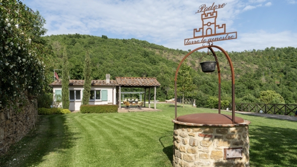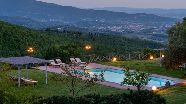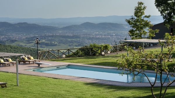 Il cuore dell'esperienza a Torre Ginestre si trova all'esterno, dove un parco di 5 ettari si estende come un'immensa terrazza naturale. Qui, lo scenario è protagonista assoluto: una vista mozzafiato sullo skyline di Arezzo e sulle colline del Casentino fa da cornice a un'oasi di relax e divertimento.