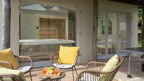 La piscina, purificata a sale, è aperta dall'ultimo sabato di aprile al primo sabato di ottobre. Per completare l'offerta benessere, in un annesso vicino alla piscina, potrete usufruire di una piccola spa privata con sauna, grande vasca idromassaggio, palestra e un bagno con doccia, per un'esperienza di puro lusso e relax.